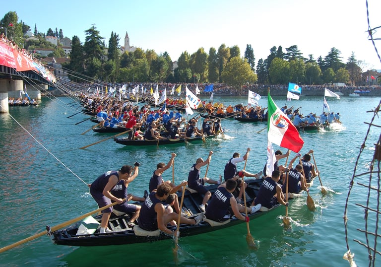 Una tradizionale regata di tipiche imbarcazioni in legno, le Lađe, che si svolge ogni anno in Croazia lungo il fiume Neretva.